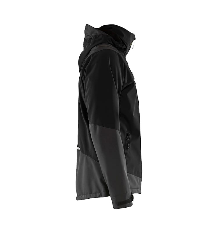 Flexible and versatile soft shell jacket with adjustable hood. Dark reflectors on the shoulders and back, plus robust zips The jacket is designed to provide maximum freedom of movement and is made of a stretchy, wind and waterproof fabric.